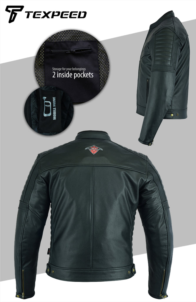 Constructed in Full grain cowhide leather, the jacket is weighty & durable.