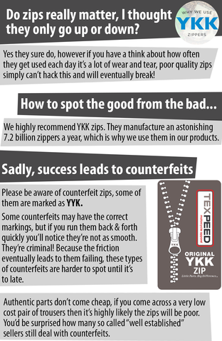 - Original YKK zips throughout.