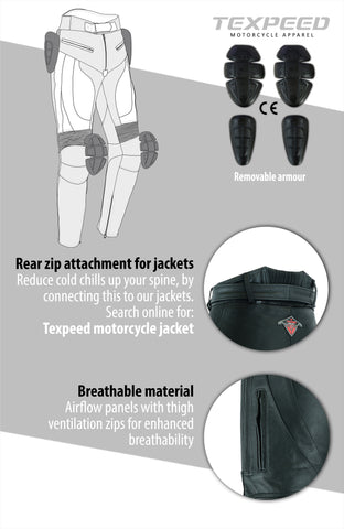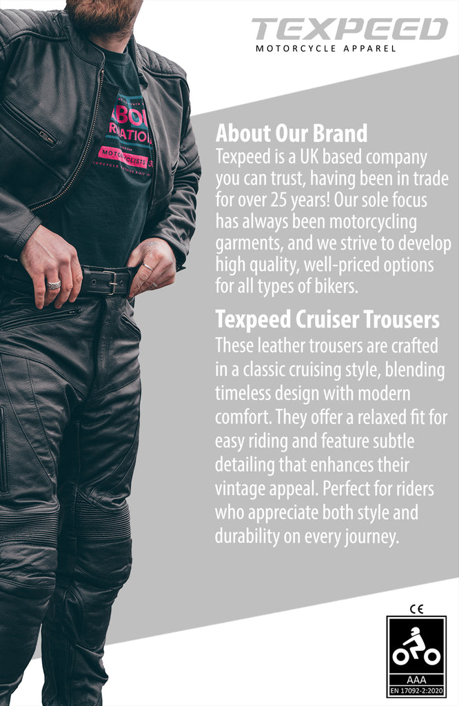 Leather Touring Cruiser Motorcycle Trousers with CE Armour | Texpeed