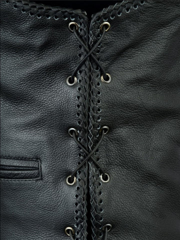 - Sides tied with laces – making the vest adjustable when switching between layers
