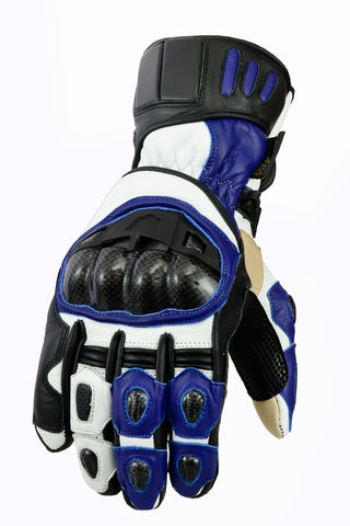 Blue Touring Leather Motorcycle Gloves