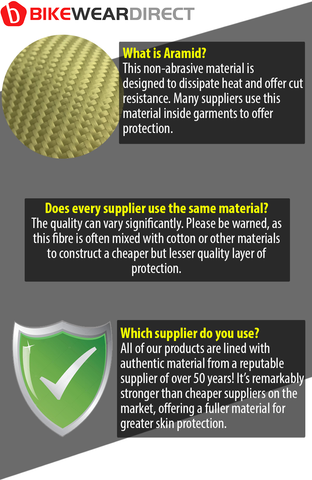 Inside, the gloves are partially lined with a dense 280gsm aramid fibre layer, offering excellent cut resistance while remaining lightweight and breathable. The soft, non-abrasive interior helps dissipate heat and keeps your hands comfortable even during extended wear. Available in black or brown, in a wide range of sizes.