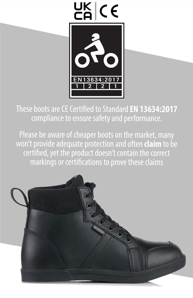 These boots are CE Certified to Standard EN 13634:2017 compliance to ensure safety and performance.