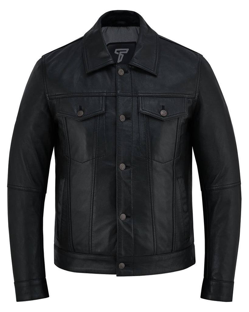Signature City Casual Black Leather Buttoned Jacket – Texpeed