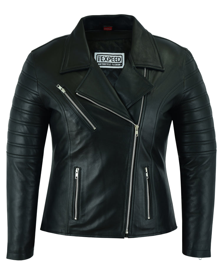 Women's Brando Style Leather Motorcycle Jacket | Texpeed